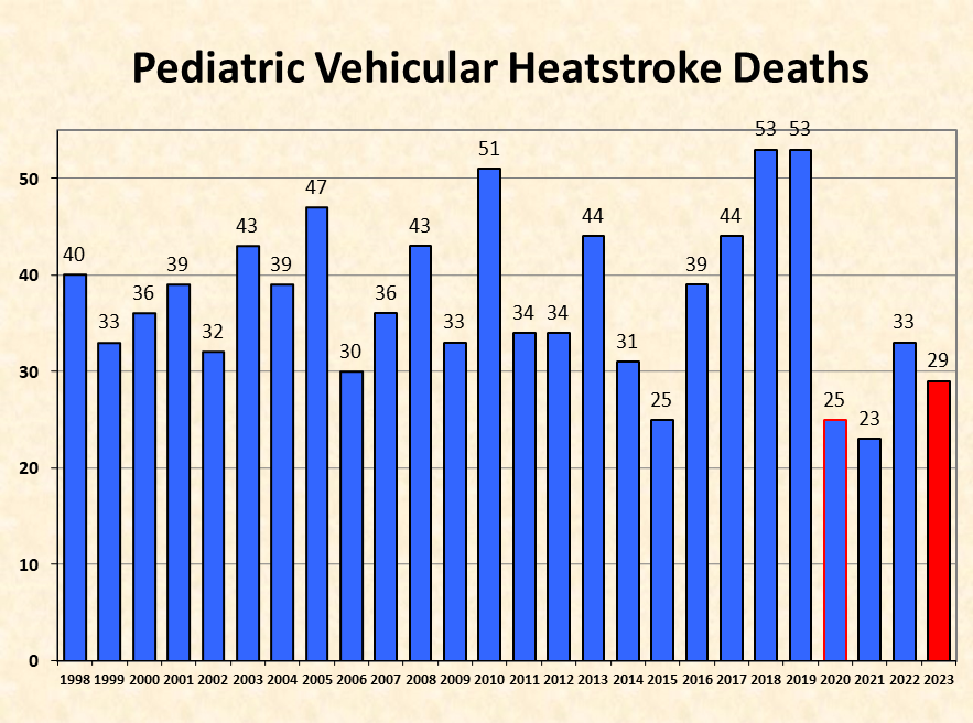 • Total number of U.S. pediatric vehicular heatstroke deaths, 2023: 29